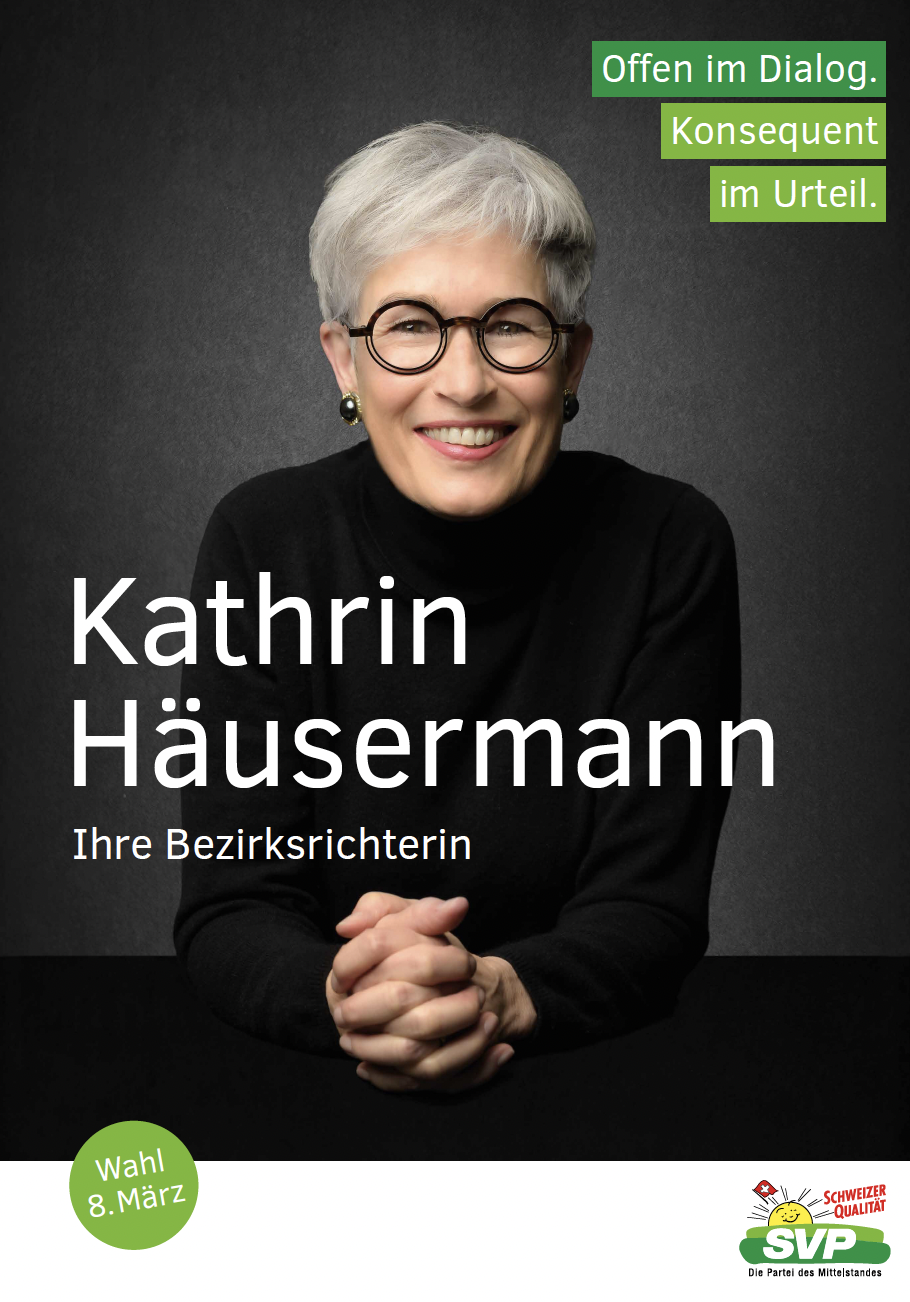 Die SVP Bezirk Lenzburg hat Käthi Häusermann als Kandidatin für die am 8. März 2026 stattfindenden Bezirksrichterwahlen nominiert. https://www.svp-bezirk-lenzburg.ch/artikel/kathrin-haeusermann-tritt-bei-den-bezirksrichterwahlen-an/