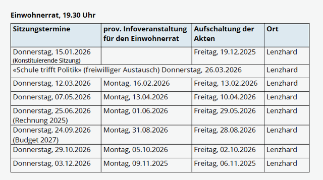 Einwohnerrat Termine